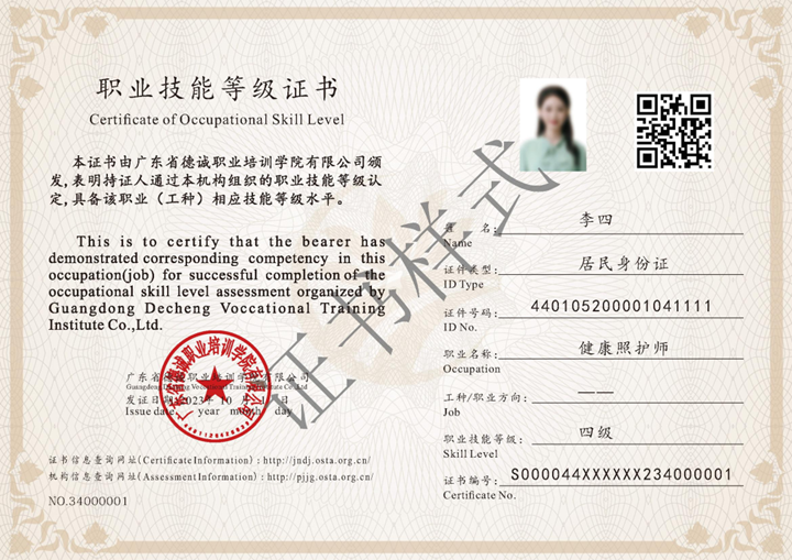 健康照護師證書是由人力資源社會保障部門備案的用人單位和社會培訓評價組織對勞動者實施職業技能考核評價后所頒發的證書。