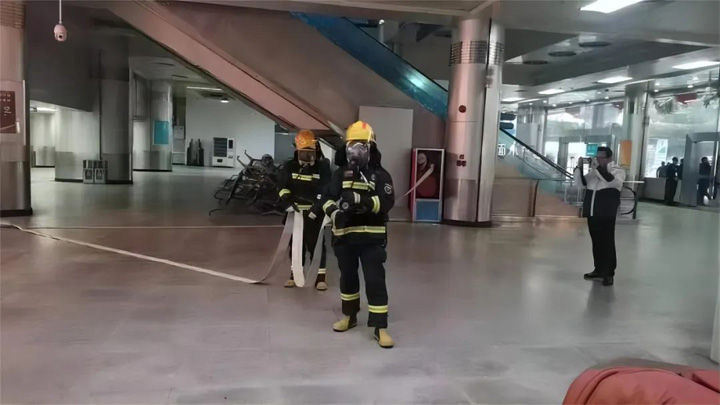 8點35分,在省站相關工作人員的組織指揮下,演練有序開始,演練模擬省站一樓候車室座椅電源插座冒煙起火,安全工作人員發現火情后組織周邊人員緊急疏散到室外安全區域,在安全技術部門人員的引導下,參與此次演練的所有人按照預定的疏散路線,安全有序地撤離到指定的逃生區域;隨后在場所有參與演練的人員在安全指揮人員的組織下一同配合省站工作人員組織的滅火救援組使用滅火器撲救起火座椅,同時,在消防救援人員到場后,協助消防救援人員撲救火災和做好善后工作。演練全程組織有序,反應迅速,達到了預期效果。