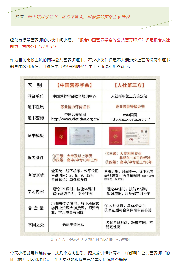 人社部公共營養師&中國營養學會公共營養師?進來告訴你怎么選!
