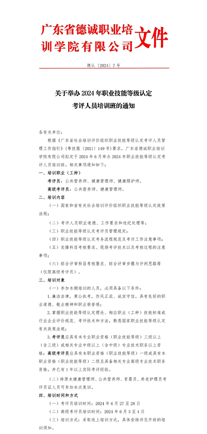 夯實技能根基,助力人才培養——廣東省德誠職業培訓學院有限公司2024年度第2期健康管理師職業技能等級認定考試順利舉行 (2024-06-01)