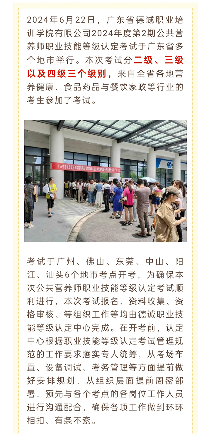 筑技能基石,促職業(yè)發(fā)展——廣東省德誠(chéng)職業(yè)培訓(xùn)學(xué)院有限公司2024年6月份公共營(yíng)養(yǎng)師職業(yè)技能等級(jí)認(rèn)定考試順利舉行