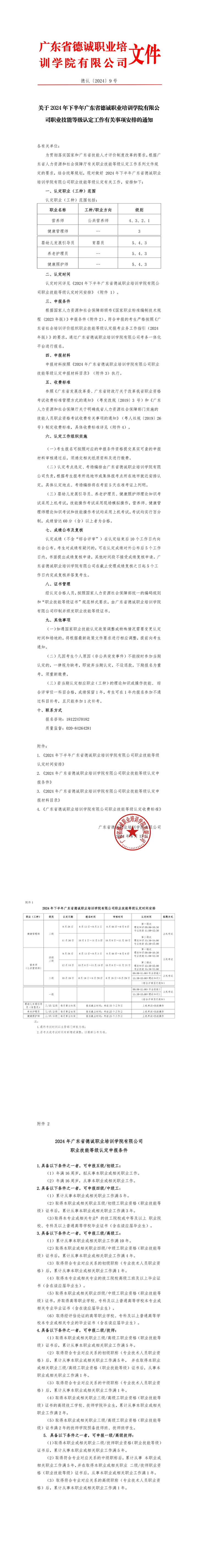 關于2024年下半年廣東省德誠職業培訓學院有限公司職業技能等級認定工作有關事項安排的通知